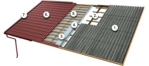 Datorita stratului de aer format intre tigla si astereala(stratul de aer are o grosime de 5cm format de sipca pe care este prinsa tigla) si a diferentei de temperatura dintre interiorul casei si mediul exterior, sub tigla se formeaza condens.