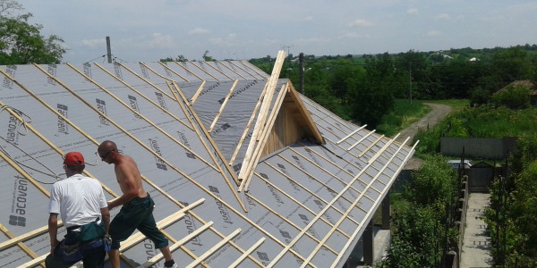 Clientul a dorit o forma personalizata a acoperisului. Patru ape cu o forma regulata dar la care exceptia o constituia accesul catre pod. Acoperisurile compuse nu reprezinta o dificultate crescuta pentru noi, aflandu-ne deja la poate al sutelea acoperis de acest fel.
