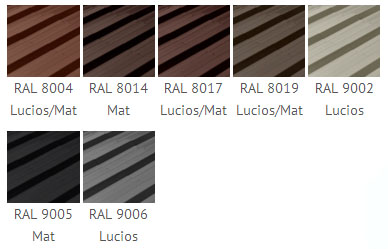 - Acoperire: poliester - 25 microni pentru tabla cu acoperire lucioasa si poliester - 35 microni pentru tabla cu acoperire mata